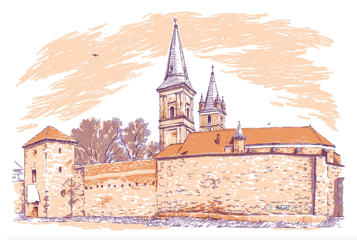 ADR Vest a început să le prezinte, vineri, sub forma unor ilustrații realizate de artiști din regiune, pe pagina de Facebook a instituției. Prima ilustrație înfățișează Cetatea Orăștiei și îi aparține lui Dan Ungureanu.