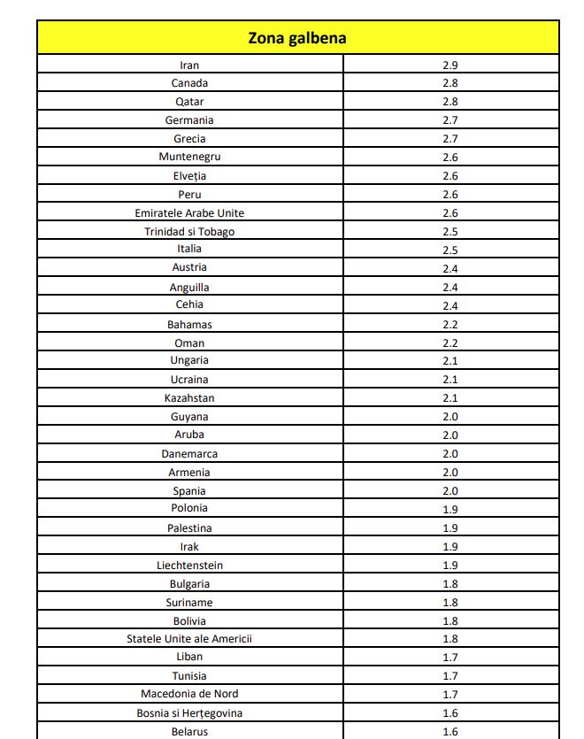 Lista actualizată a statelor cu risc epidemiologic
