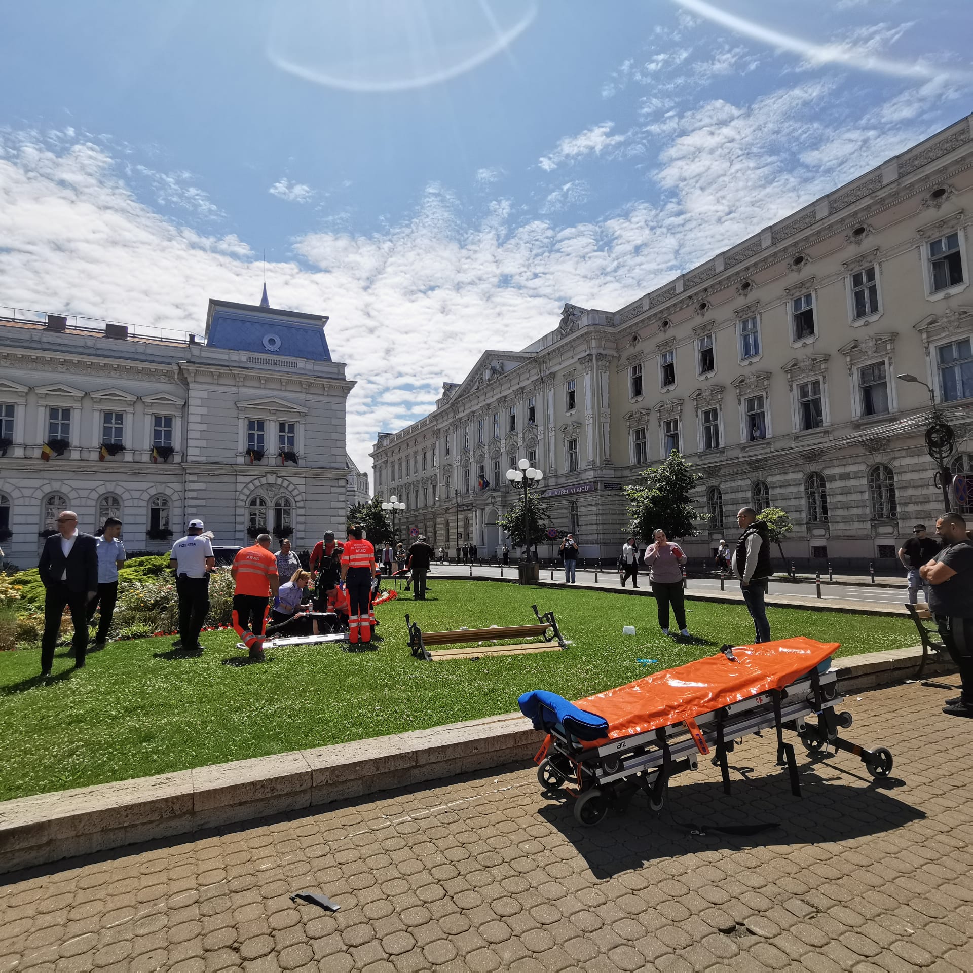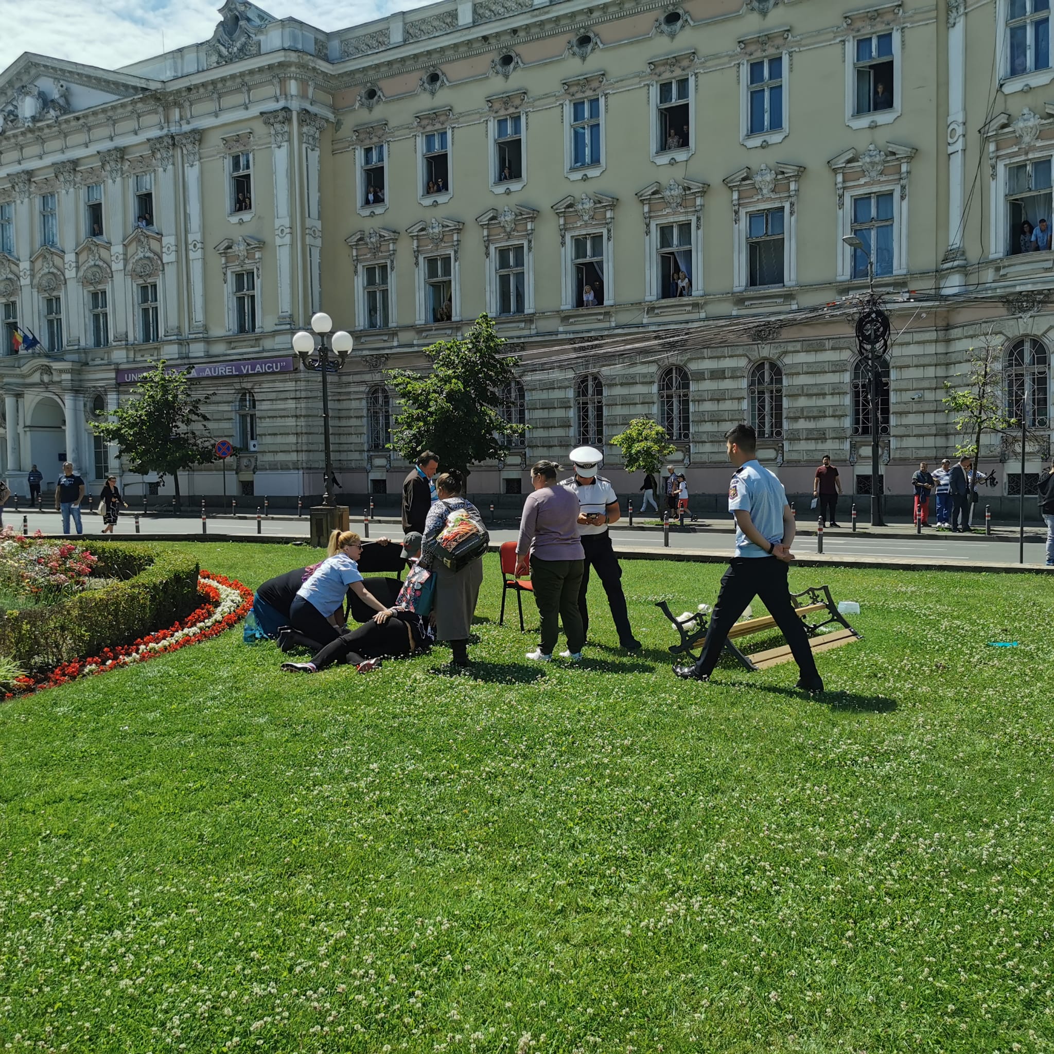 În urma impactului, banca, cu tot cu femeie, a fost proiectată pe spațiul verde. La fața locului a ajuns, de urgență, un echipaj medical al Serviciului de Ambulanță Județean, care a acordat primul ajutor victimei aflate în stare de inconștiență. Femeia a fost stabilizantă și transportată la spital pentru investigații suplimentare.