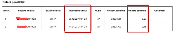 Puteți verifica și dumneavoastră dacă la emiterea facturilor au fost calculate penalizări. Informația este disponibilă pe pagina 2 a facturilor emise de Hidroelectrica.