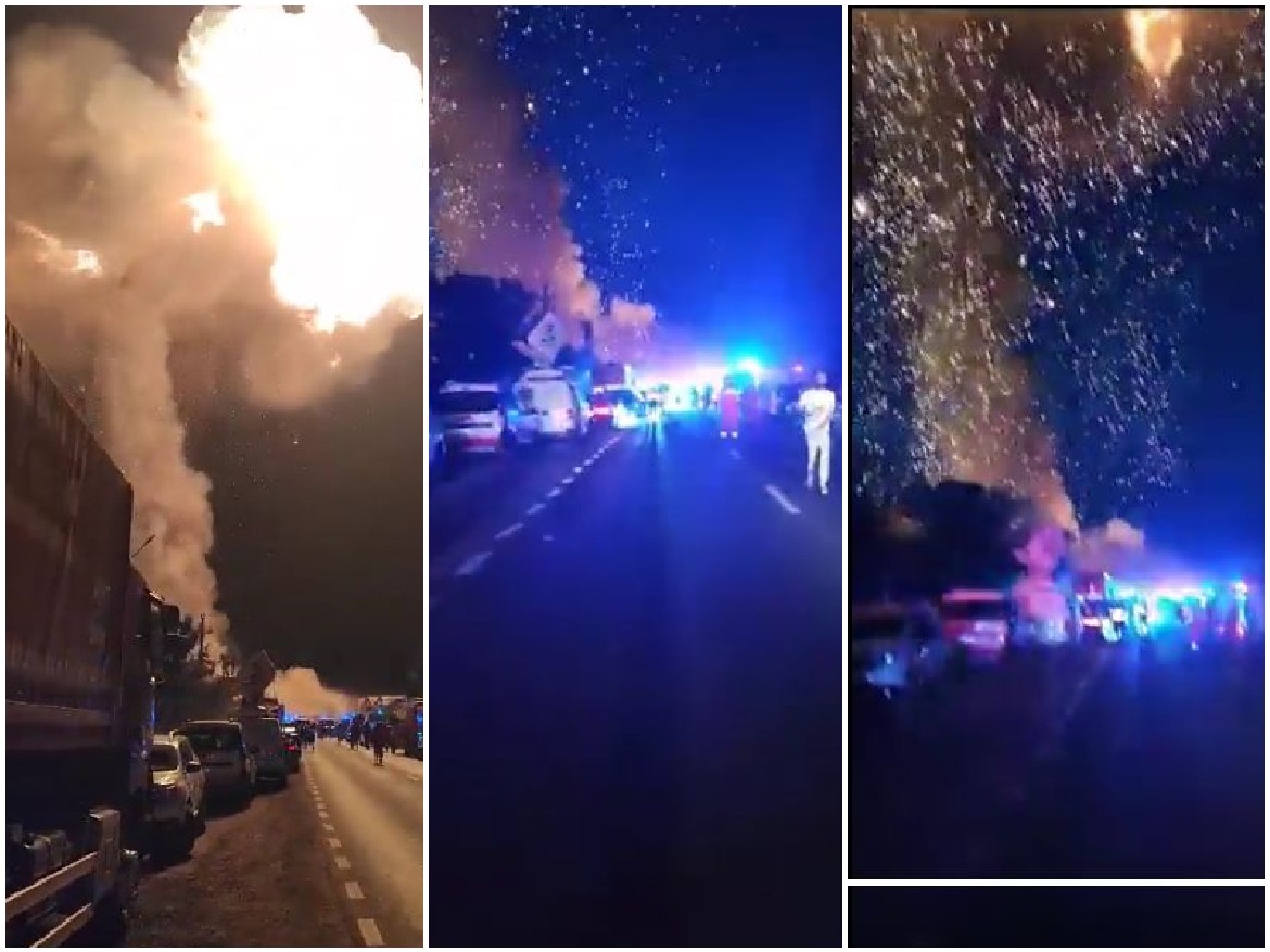 Autoritățile intervin cu efective mărite, iar pe o rază de 300 m populația a fost evacuată. În plus se degajă fum toxic. An explosion occurred on Saturday evening at an LPG (liquefied petroleum gas) station in Crevedia, Dâmbovița county, on DN1A. Multiple casualties have been reported. Several ambulances and a helicopter are en route to … Continue reading VIDEO. Mai mulți răniți și decedați, după două explozii repetate la o stație GPL din Dâmbovița