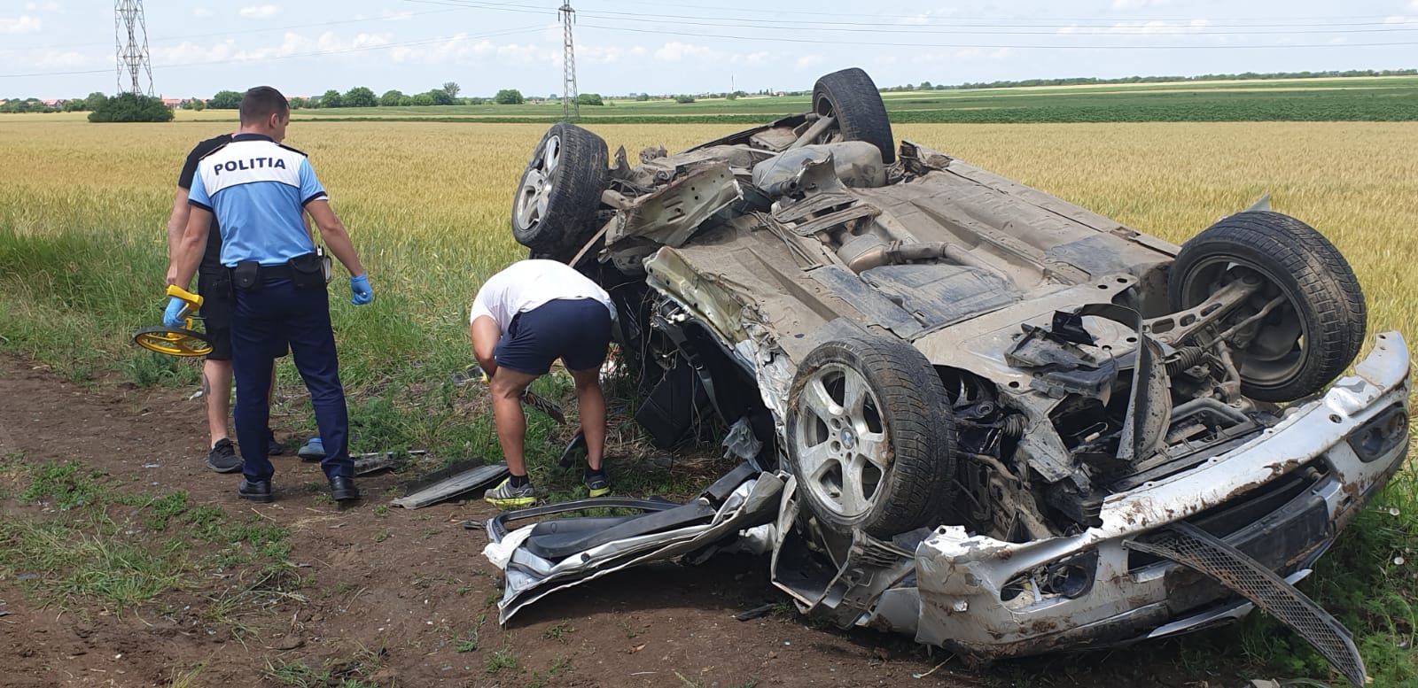 Autoturismul, în care se aflau patru persoane, s-a răsturnat de pe viaduct, în zona localităţii Cruceni, comuna Şagu. Potrivit primelor informaţii, trei persoane au reuşit să iasă singure din maşină, în timp ce o victimă a rămas înarcerată, conform aradon.ro.