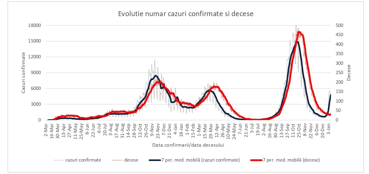 Raportul Institutului Național de Sănătate Publică (INSP) arată că în perioada 3-9 ianuarie 2022, din județele Cluj, Suceava, Timiș și Brașov, alături de municipiul București, au provenit 43,5% dintre cazurile Covid-19 înregistrate în țară.