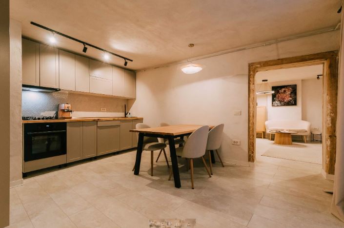 Apartamentul tranzacționat se află în centrul istoric al Brașovului. Locuința, situată într-o clădire cu acces direct din strada Republicii, a fost recent renovată, păstrând elementele arhitecturale originale și adoptând un design inspirat din filosofia japoneză wabi-sabi, care pune accent pe simplitate, naturalețe și autenticitate.
