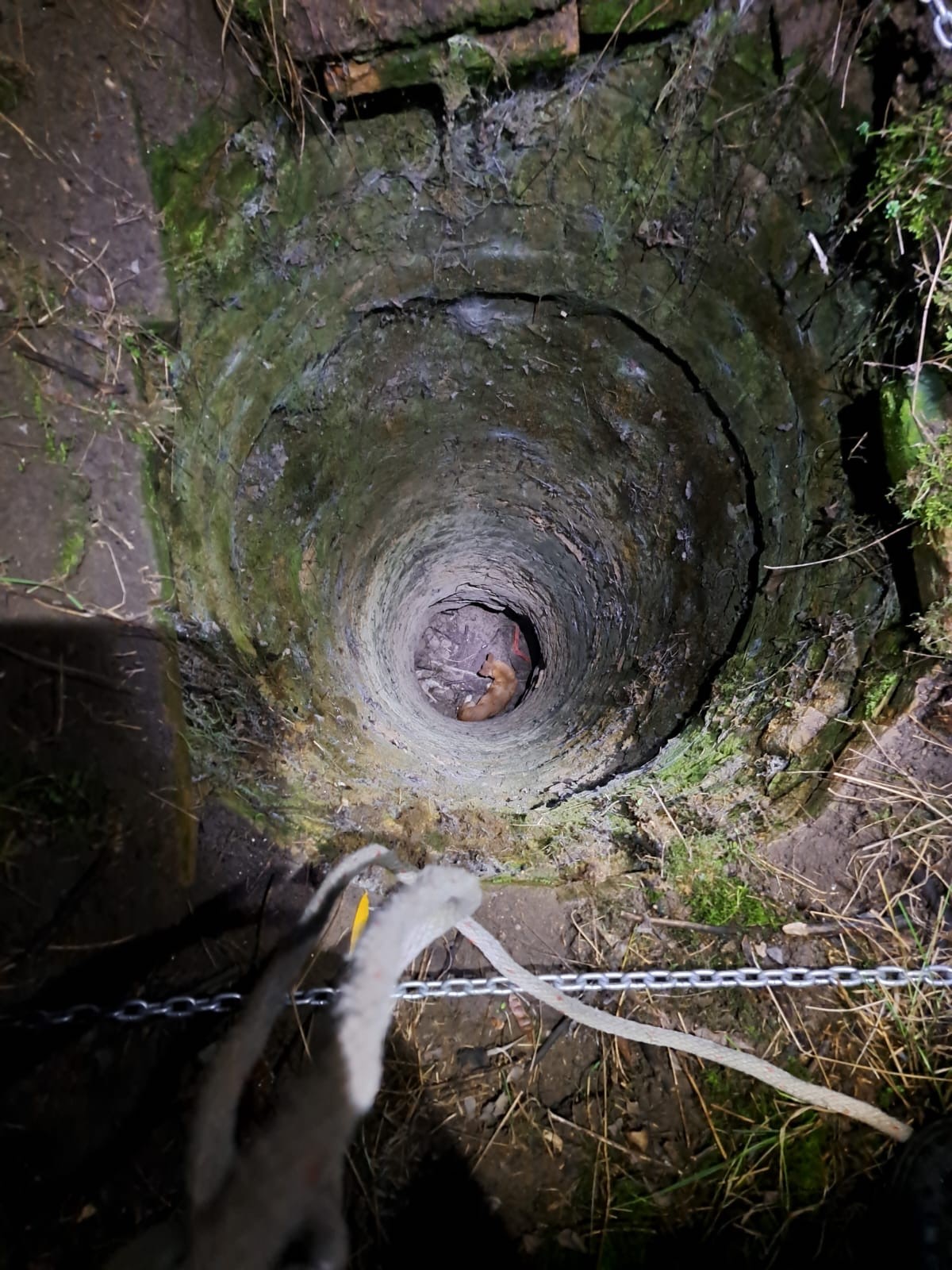 Ajunși la fața locului, pompierii au localizat cățelul, iar unul dintre subofițeri a coborât în fântână, fiind apoi ridicat de către colegi împreună cu bietul animal, cu ajutorul cordițelor de salvare.
