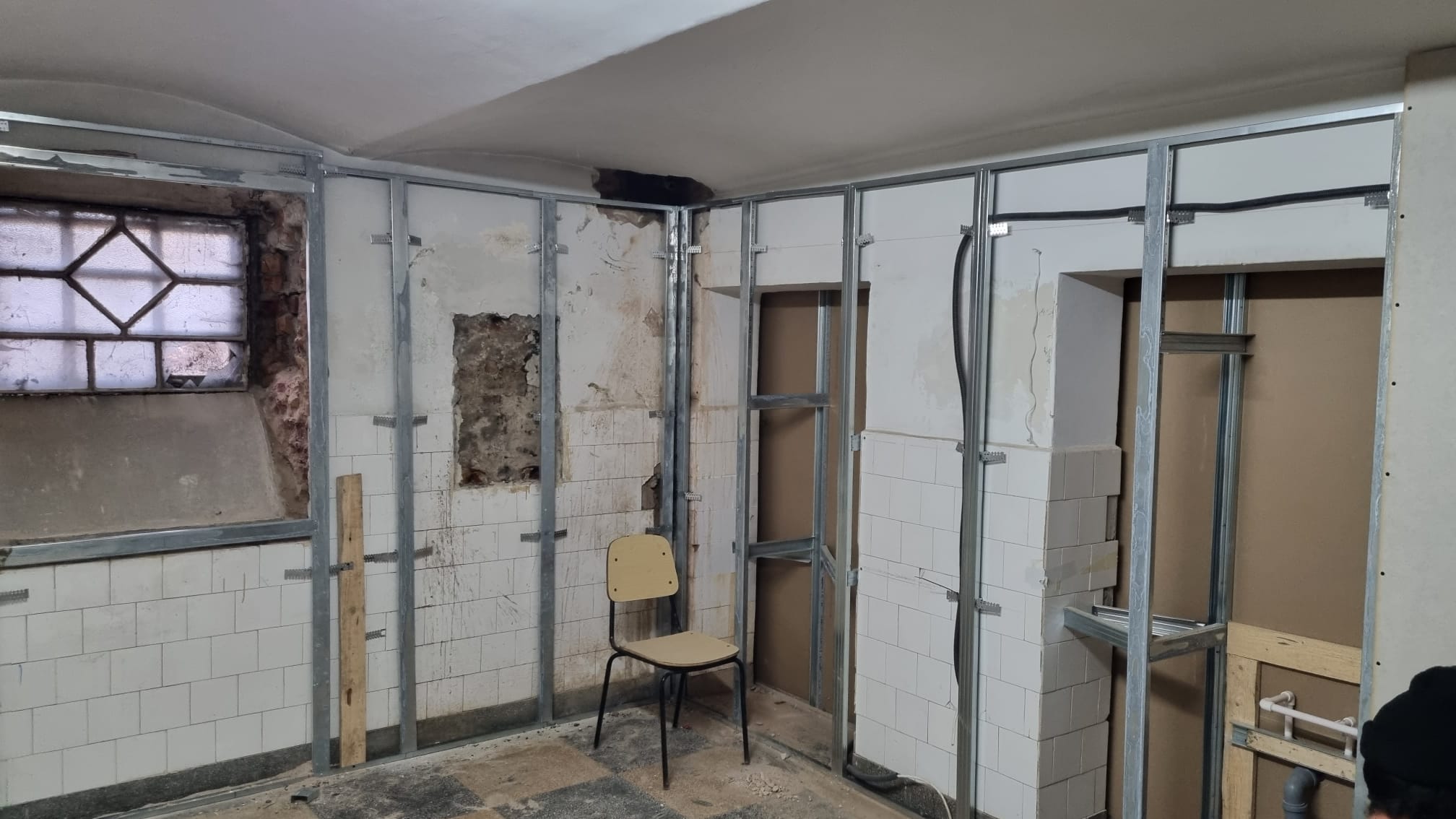 Lucrările presupun schimbarea țevilor de apă și canalizare, recompartimentarea demisolului și a magaziei de la subsol, igienizarea clădirii, turnarea de șapă și montarea unui tarkett medical (covor special din PVC). La acoperiș lucrează o altă echipă, care schimbă structurai de lemn și toate țiglele.