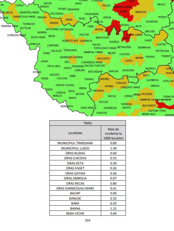 Criteriul epidemiologic în baza căruia unitățile/instituțiile de învățământ stabilesc unul dintre cele 3 scenarii este rata incidenței cumulate, respectiv numărul total de cazuri noi din ultimele 14 zile raportat la 1000 de locuitori. Scenariul verde înseamnă că incidența cazurilor într-o localitate este sub 1 la mia de locuitori, iar galben peste unu la mia de locuitori. În Timiș, majoritatea localităților sunt în scenariul I, cel verde cu o incidență a cazurilor sub 1 la mia de locuitori.
