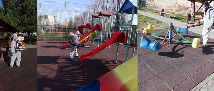 Primarul Nicolae Robu și viceprimarul Dan Diaconu au anunțat pe rețeaua de socializare că municipalitatea a început și dezinfectarea locurilor de joacă, a mobilierului urban, a parcurilor.