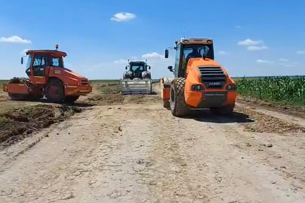 Lucrări de asfaltare pe un drum din Timiș care leagă Fibișul de Seceani