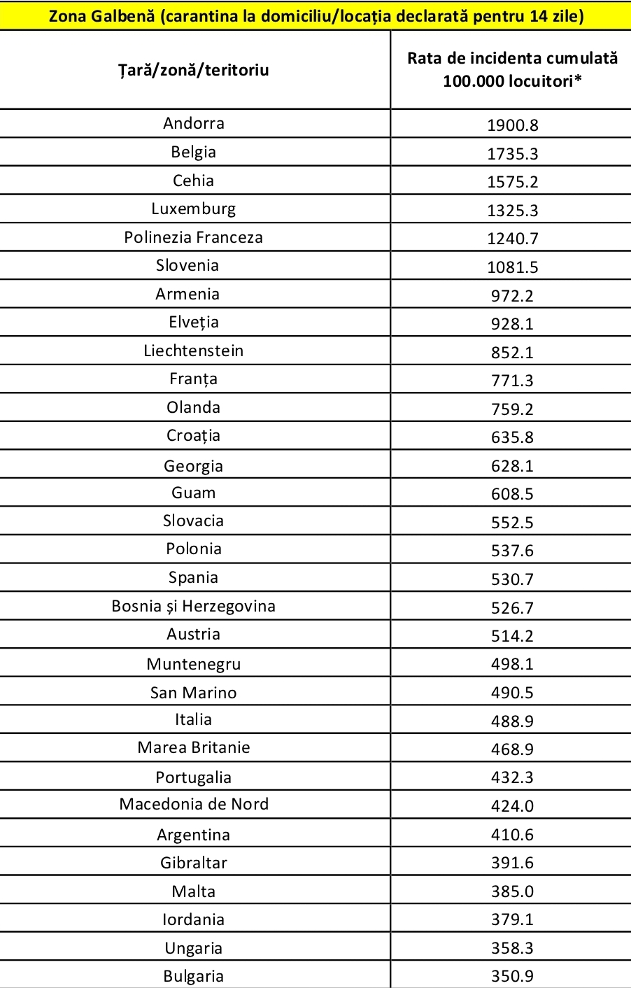 În urma Hotărârii de astăzi a fost actualizată lista statelor și zonelor cu risc epidemiologic ridicat, pentru care se instituie măsura carantinei asupra persoanelor ce sosesc în România. Lista o puteți vedea mai jos: