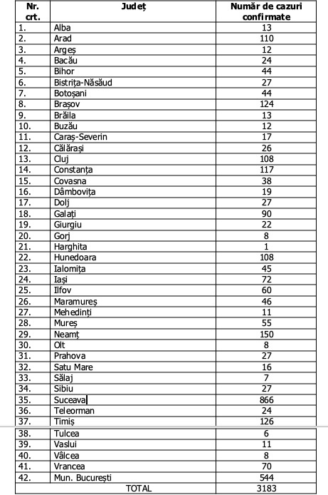 În România, până vineri, la ora 13, au fost depistate 3.183 de persoane infectate cu COVID. Dintre acestea, 281 de persoane au fost declarate vindecate, conforn ministrului Sănătății Nelu Tătaru. În Timiș au fost înregistrate până acum 126 de cazuri de coronavirus.