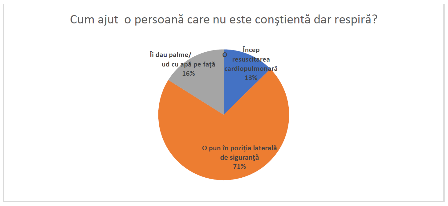 - Cunoștințe despre resuscitarea cardiorespiratorie: majoritatea participanților au o înțelegere generală corectă a ceea ce implică resuscitarea cardiopulmonară.