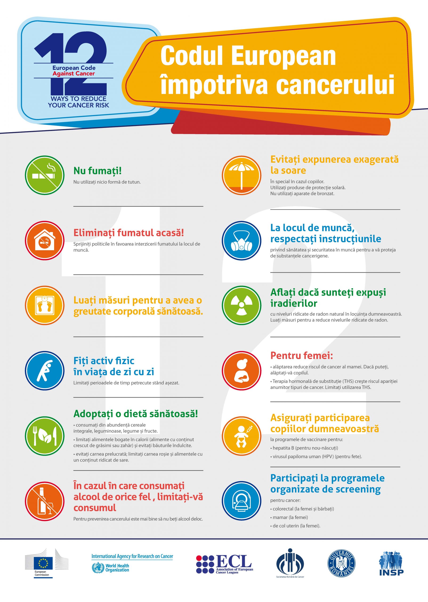 Potrivit INSP, prin adoptarea celor 12 măsuri ale Codului European de Luptă Contra Cancerului, fiecare dintre cetățeni își poate reduce riscul individual de boală, iar la nivel populațional peste 40% din cancere pot fi evitate.