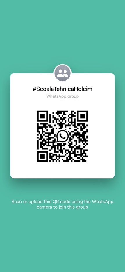 Pentru informații suplimentare, contactează reprezentații Holcim la numărul de telefon 0758 016 284 sau pe grupul nostru de WhatsApp scanând codul QR.