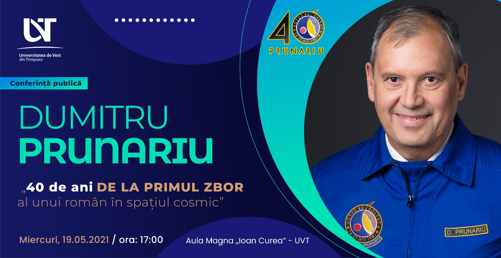 Miercuri, 19 mai, de la ora 17, Dumitru Prunariu susține o conferință de presă pentru celebrarea celor 40 de ani de la primul zbor al unui român în spațiul cosmic. Aceasta va fi transmisă live din Aula Magna „Ioan Curea” a Universității de Vest din Timișoara pe pagina oficială de Facebook.