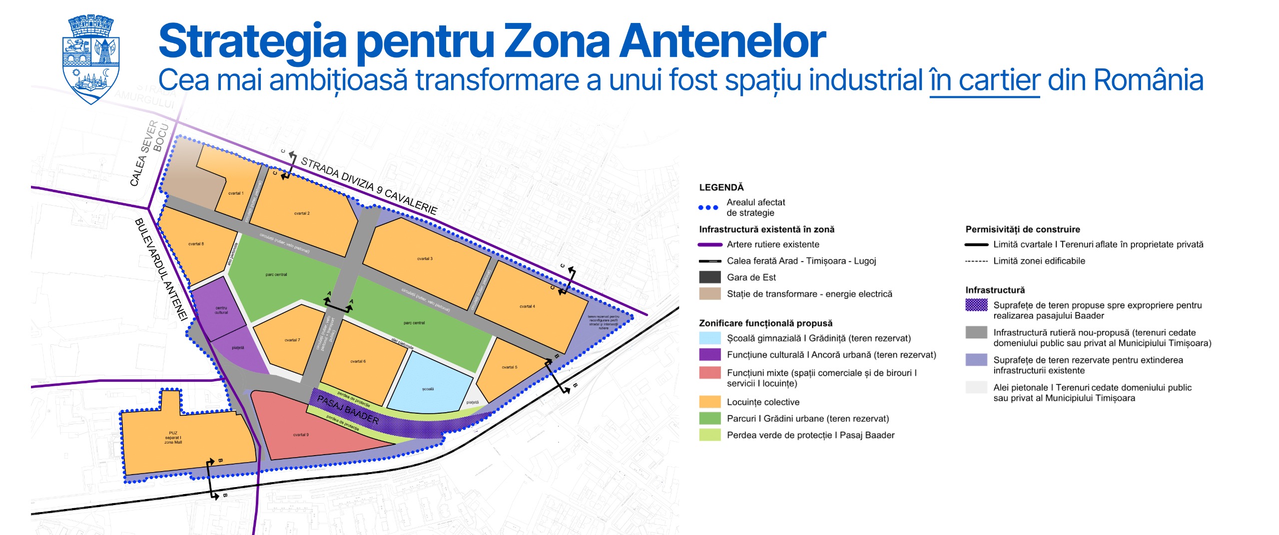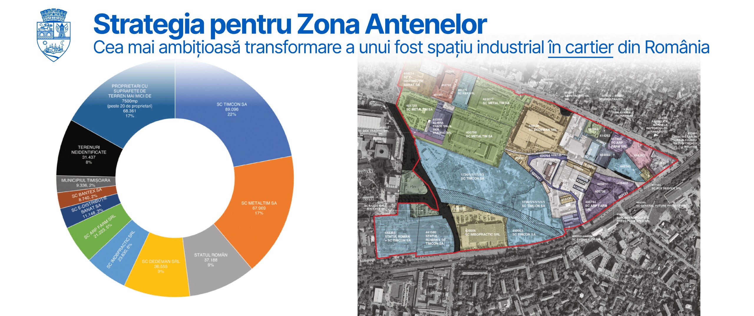 Vă reamintim, în martie 2023, Consiliul Local Timișoara aprobase intenția de realizare a unui masterplan pentru zona Antenelor. Aici au fost identificate mai multe disfuncționalități: lipsa unei corelări între planurile de investiții publice și cele private, lipsa unui instrument de reglementare pe termen mediu și lung, lipsa serviciilor, infrastructură ineficientă.