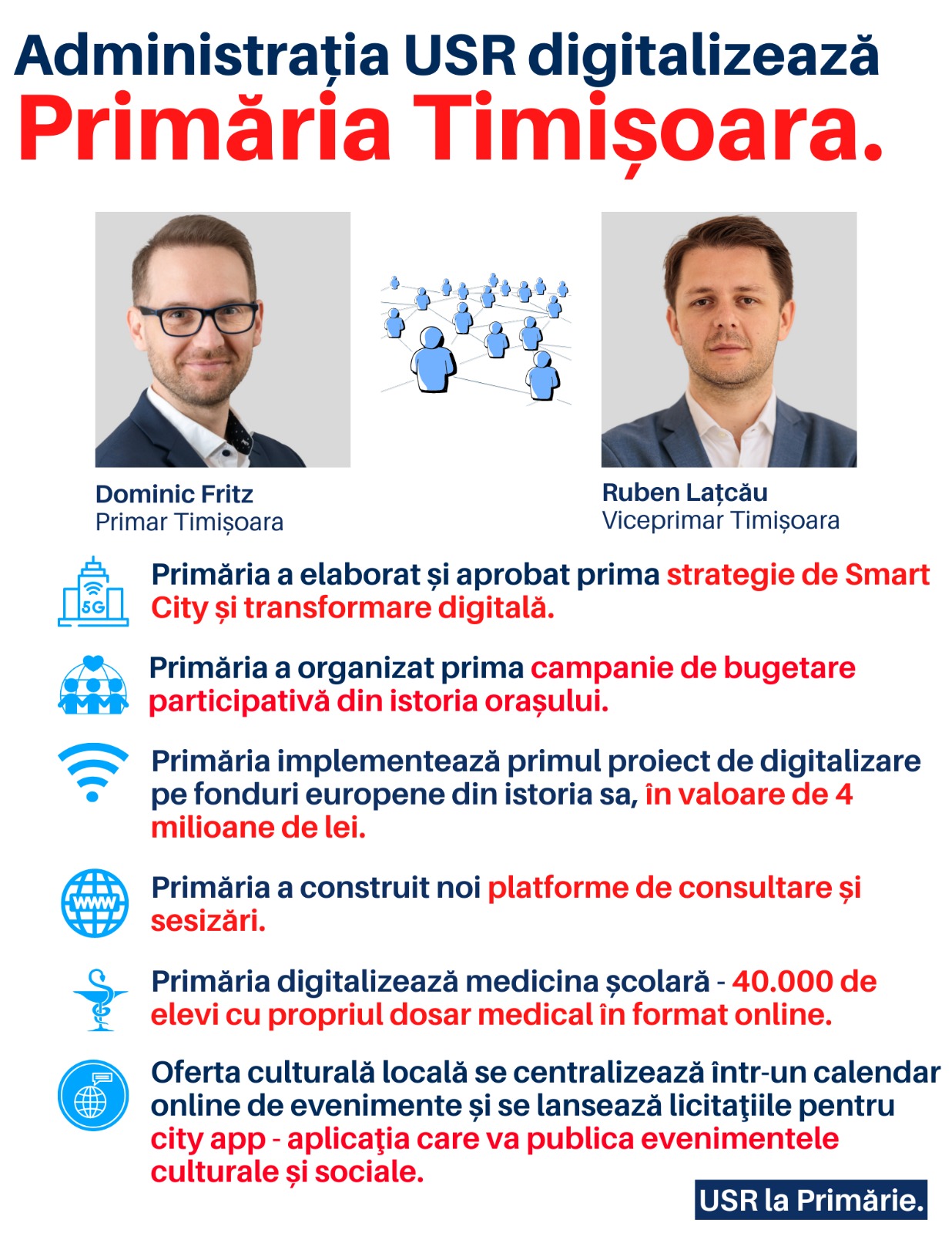 Primăria a elaborat și aprobat prima strategie de Smart City și transformare digitală a Timișoarei pentru 2022-2027, cu aport de la 600 de specialiști din diverse domenii, din oraș. Ea a fost aprobată prin HCL în iulie 2022, urmând să fie operaţionalizată printr-un cluster timișorean de colaborare și promovare a proiectelor strategice.