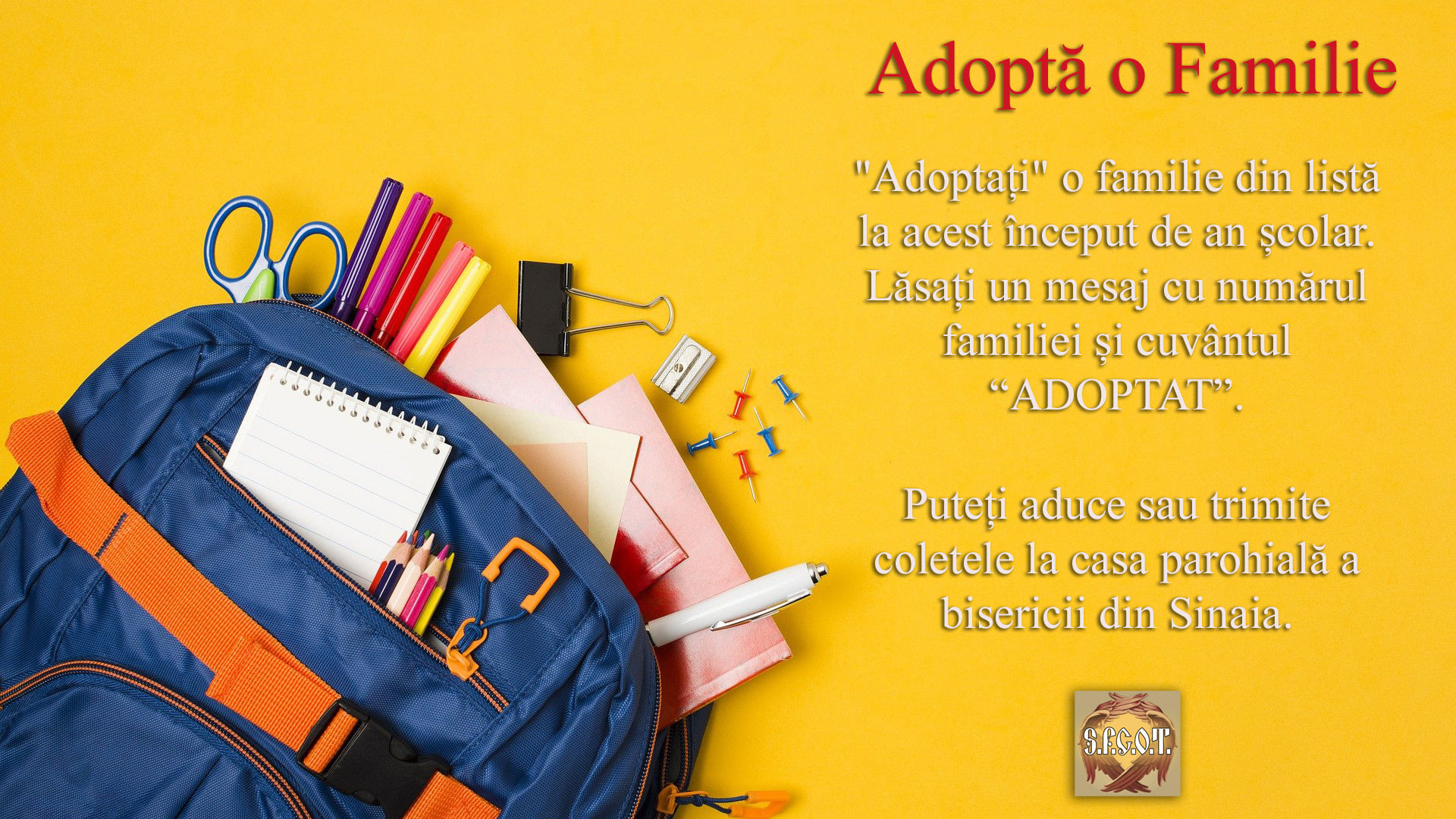 Până pe 6 septembrie puteți trimite prin curier pachetele sau le puteți duce la biserica Parohiei Ortodoxe Române Timișoara Iosefin, din Piața Alexandru Mocioni, nr.9.