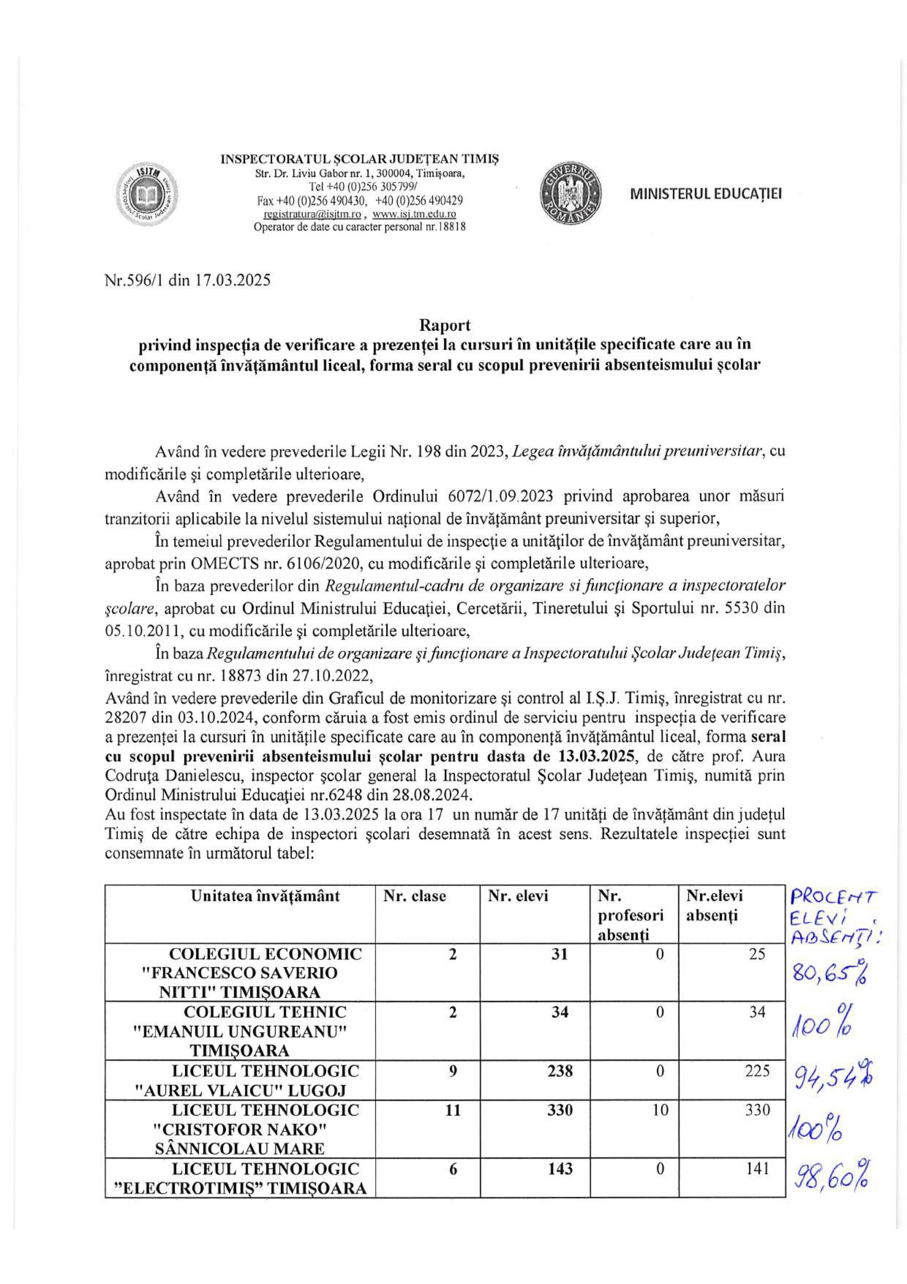La șase dintre aceste licee, prezența era chiar 0. În plus, lipseau și 20 de profesori. Singur liceu cu o prezență de peste 40% a fost Liceul Tehnologic „Valeriu Braniște” din Lugoj (65%).