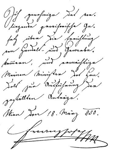 Conștient de importanța camerelor de comerț, Ministrul Comerțului al Imperiului Habsburgic, baronul Carl Ludwig von Brück, a prezentat împăratului Franz Josef I al Austriei un proiect privind înființarea acestora pe teritoriul Imperiului.
