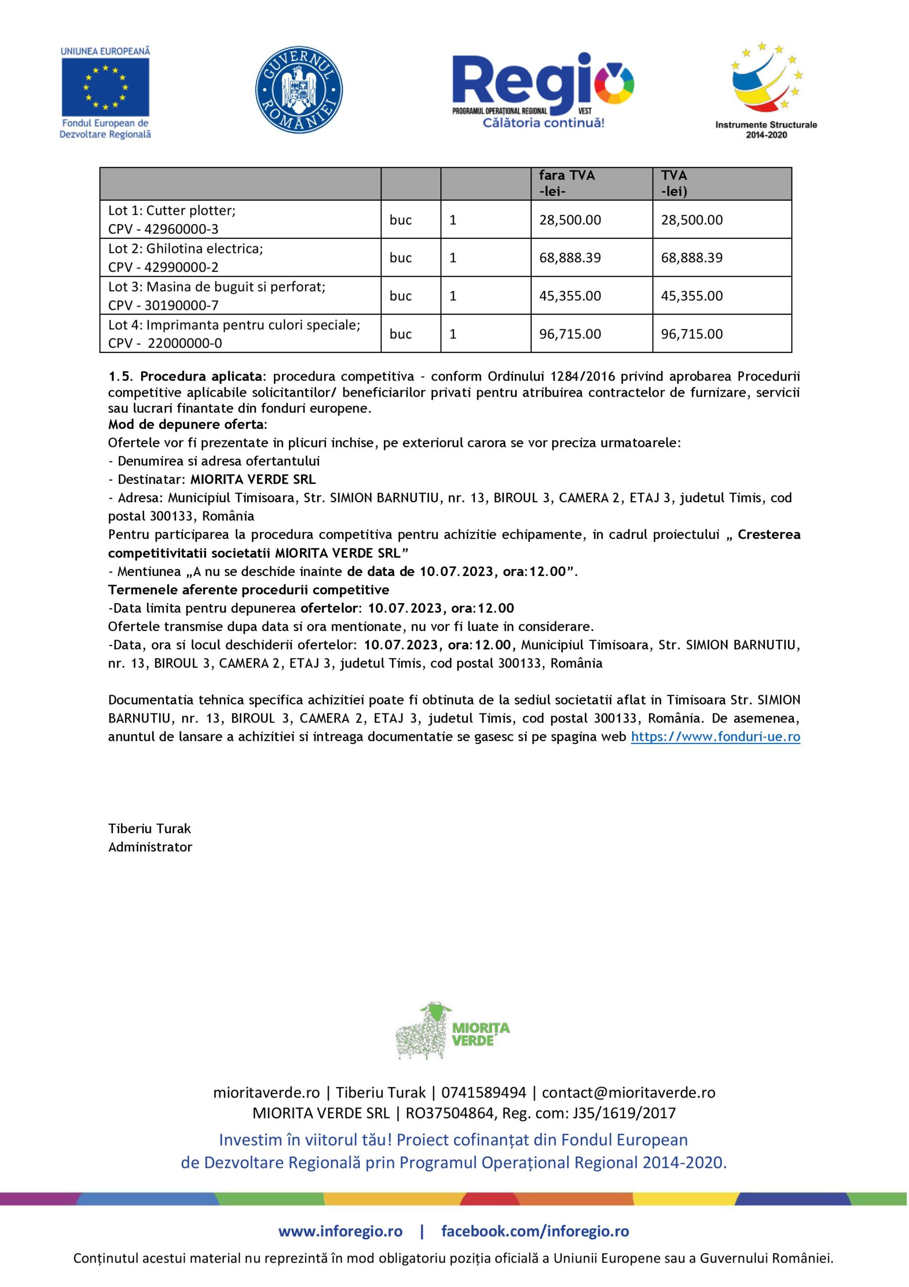 MIORITA VERDE SRL vă invită sa participati la procedura de achizitie de