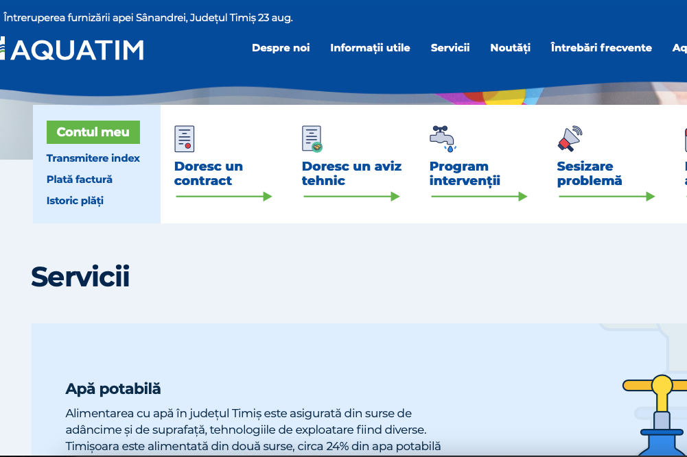 Aquatim are site nou. Se pot depune online și documentele pentru avize sau contracte noi