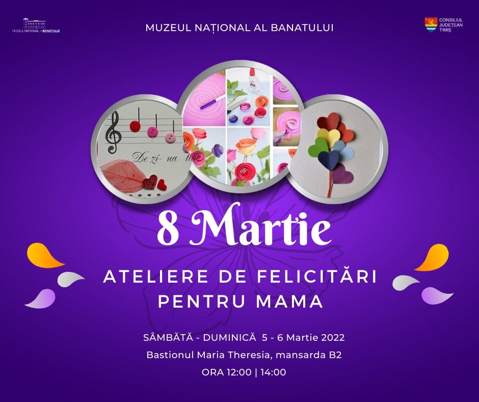 Cei mici vor avea ocazia de a petrece sfârșitul de săptămână la Muzeul Național al Banatului, într-o manieră creativă. Vor face felicitări „inspirate de copilărie, zâmbete și flori”.