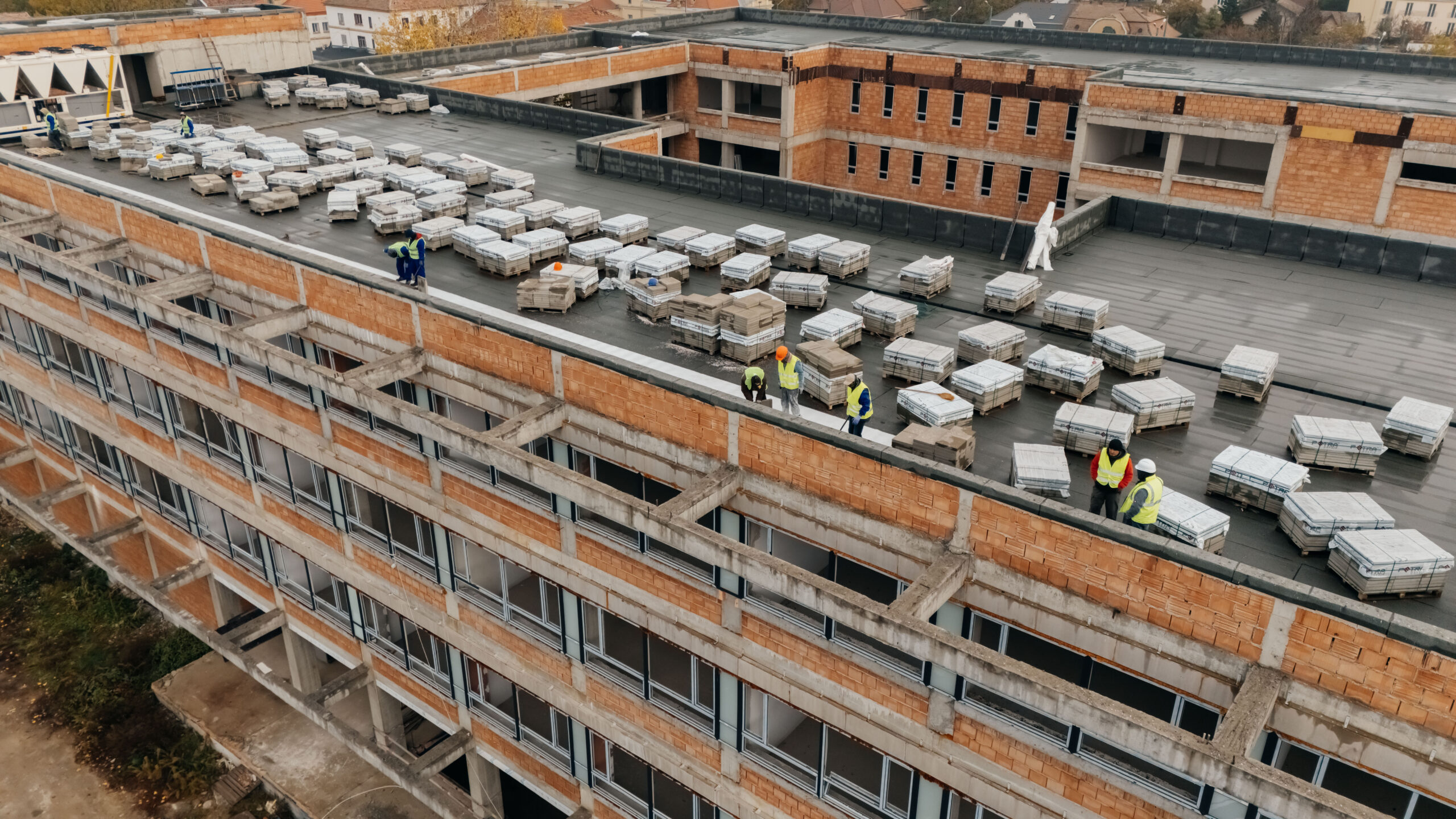 Reprezentanții municipalității au transmis, marți, că echipele constructorului au reluat lucrările la finisajele interioare, precum și acoperiș, unde vor fi amplasate panouri fotovoltaice și panouri solare pentru încălzirea apei.