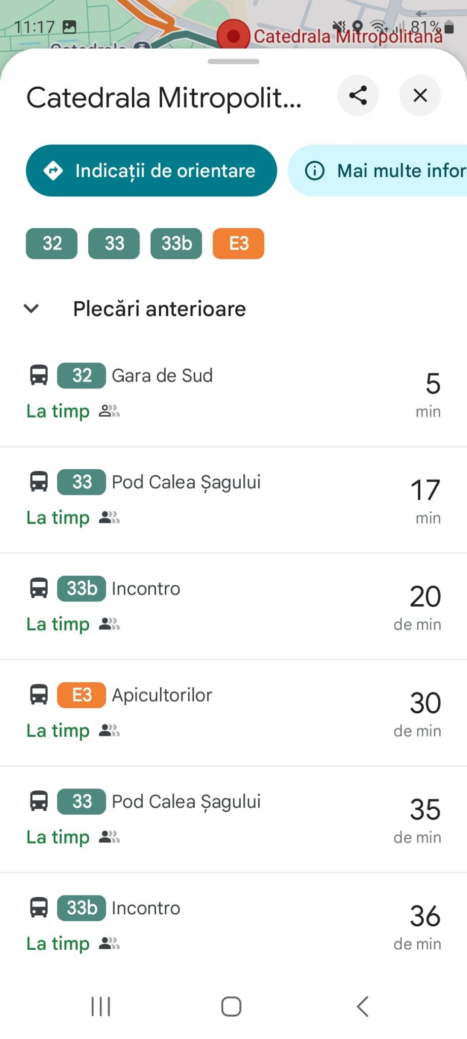 Timpii de așteptare în stații pot fi consultați printr-un simplu click pe stația dorită din aplicația Google Maps. Datele sunt preluate în timp real de pe GPS-ul mijloacelor de transport, asigurând o informare corectă. Pe lângă timpii de așteptare, aplicația Google Maps oferă posibilitatea de a calcula mai multe variante de rute, permițând călătorilor să aleagă cea mai convenabilă opțiune pentru a ajunge la destinație.