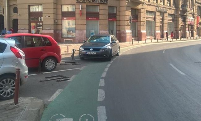 cat mai multe masini parcate pe pistele de biciclete (vezi ca in poza 2 de mai sus)
