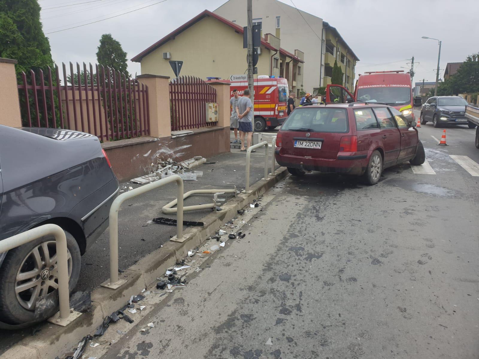 Una dintre mașini a ricoșat într-un stâlp, iar în zonă a fost întreruptă alimentarea cu energie electrică. Celălalt autoturism a ajuns pe trotuar. Traficul în zonă a fost blocat.