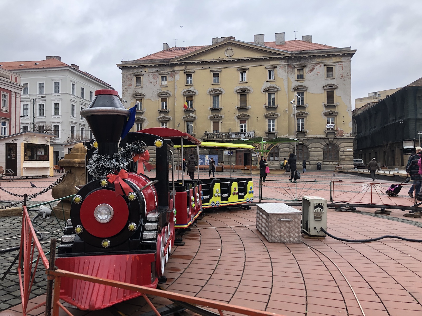 Patinoarul deschis de Crăciun a ocupat mare parte din piață, caruselul a fost pus în mijloc, iar trenulețul trona fix lângă statuia realizată acum peste 200 de ani. Patinoarul dispare zilele acestea, odată cu încălzirea vremii, pentru că nu mai poate funcționa, însă trenulețul și caruselul ar mai putea rămâne. Sau nu, pentru că nu se știe exact ce planuri au Biroul Organizare Evenimente din Primăria Timișoara și Casa de Cultură a orașului.