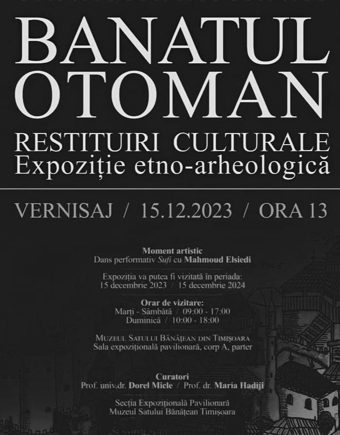 Expoziția etno-arheologică „Banatul Otoman- restituiri culturale” se va desfășura între 15 decembrie 2023 și 15 decembrie 2024, în Sala Expozițională Pavilionară – corp A parter din cadrul Muzeului Satului Bănățean Timișoara.