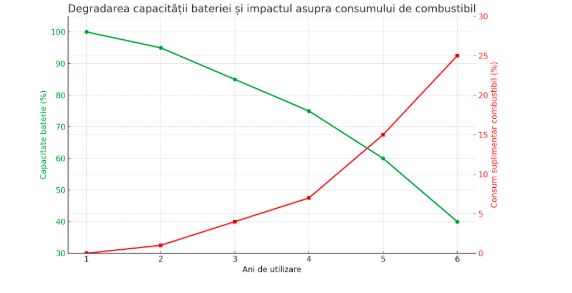 Grafic: Evoluția capacității bateriei și impactul asupra consumului de combustibil