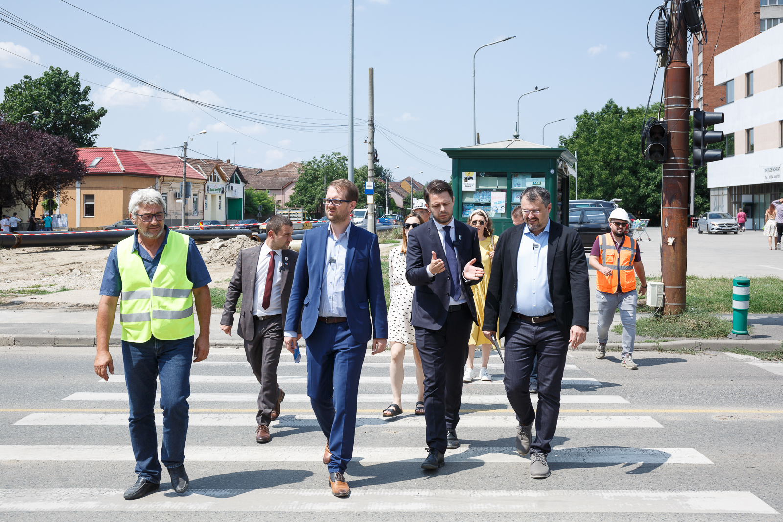 Ministrul Investițiilor a făcut o plimbare scurtă pe șantierul Calea Bogdăneștilor, desfășurat pe fonduri europene, unde va fi amenajat un adevărat bulevard, cu linii de tramvai înierbate, patru benzi de circulație, piste de biciclete și trotuare. A anunțat „multe idei în ceea ce privește transportul verde” ale Primăriei Timișoara.