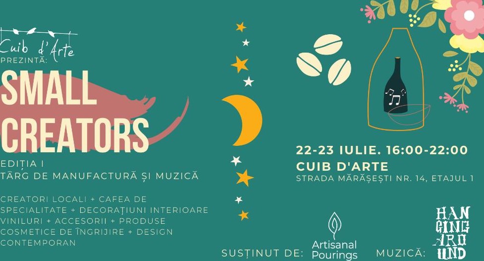 Evenimentul va avea loc pe 22 și 23 iulie, între orele 16-22, în localul Cuib d`Arte, situat pe strada Mărășești nr. 14 (etajul 1). Veți putea cumpăra decorațiuni interioare, bijuterii, cafea de specialitate, picturi, viniluri, produse cosmetice naturale și alte bunătăți. Muzica va fi asigurată de Hanging Around, iar intrarea pentru public va fi gratuită. Se vor respecta toate măsurile împotriva COVID-19 aflate în vigoare.