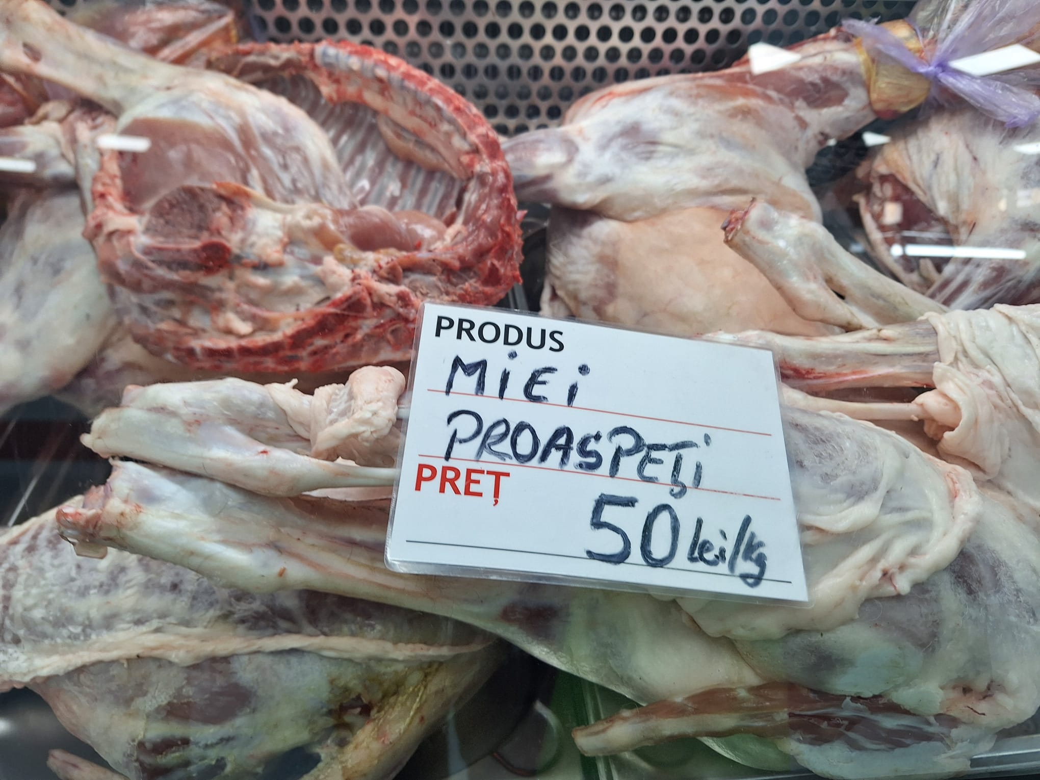 Cu două săptămâni și jumătate înainte de Paște, carnea de miel a apărut în vitrinele frigorifice ale comercianților din Piața Badea Cârțan. Ei au porționat carnea de miel, astfel încât aceasta să fie și mai accesibilă.