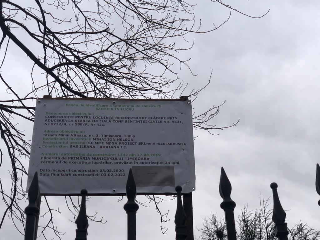 La începutul acestei săptămâni a fost pusă și placa de identificare a șantierului, iar zi de zi se mișcă cineva prin curte. Potrivit panoului de șantier, se execută „construcții pentru locuințe – reconstruire clădire prin aducerea la starea inițială, conform sentinței civile nr. 9531”.