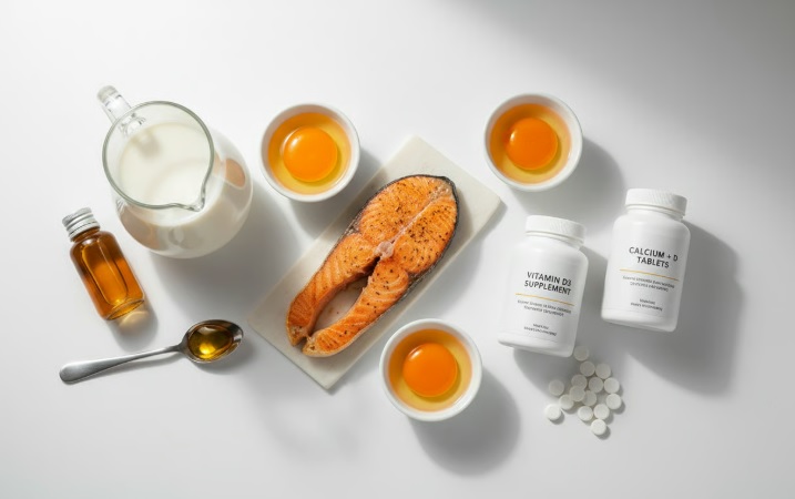 Alimentele precum uleiul de pește, gălbenușul de ou și peștele gras (somon, macrou) sunt surse importante de vitamina D. Lipsa acestora din alimentație poate duce la carențe semnificative.
