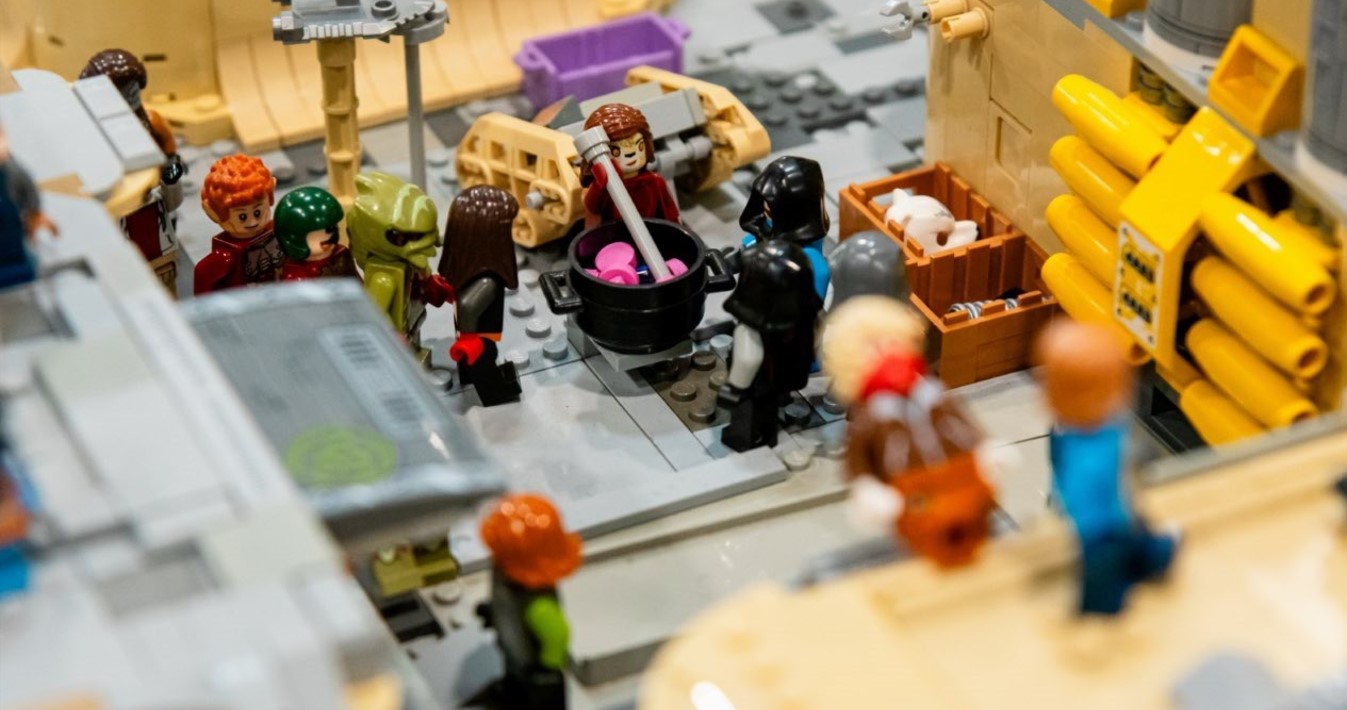 Diorama este construită din peste un milion de piese lego și peste 1.500 de minifigurine.