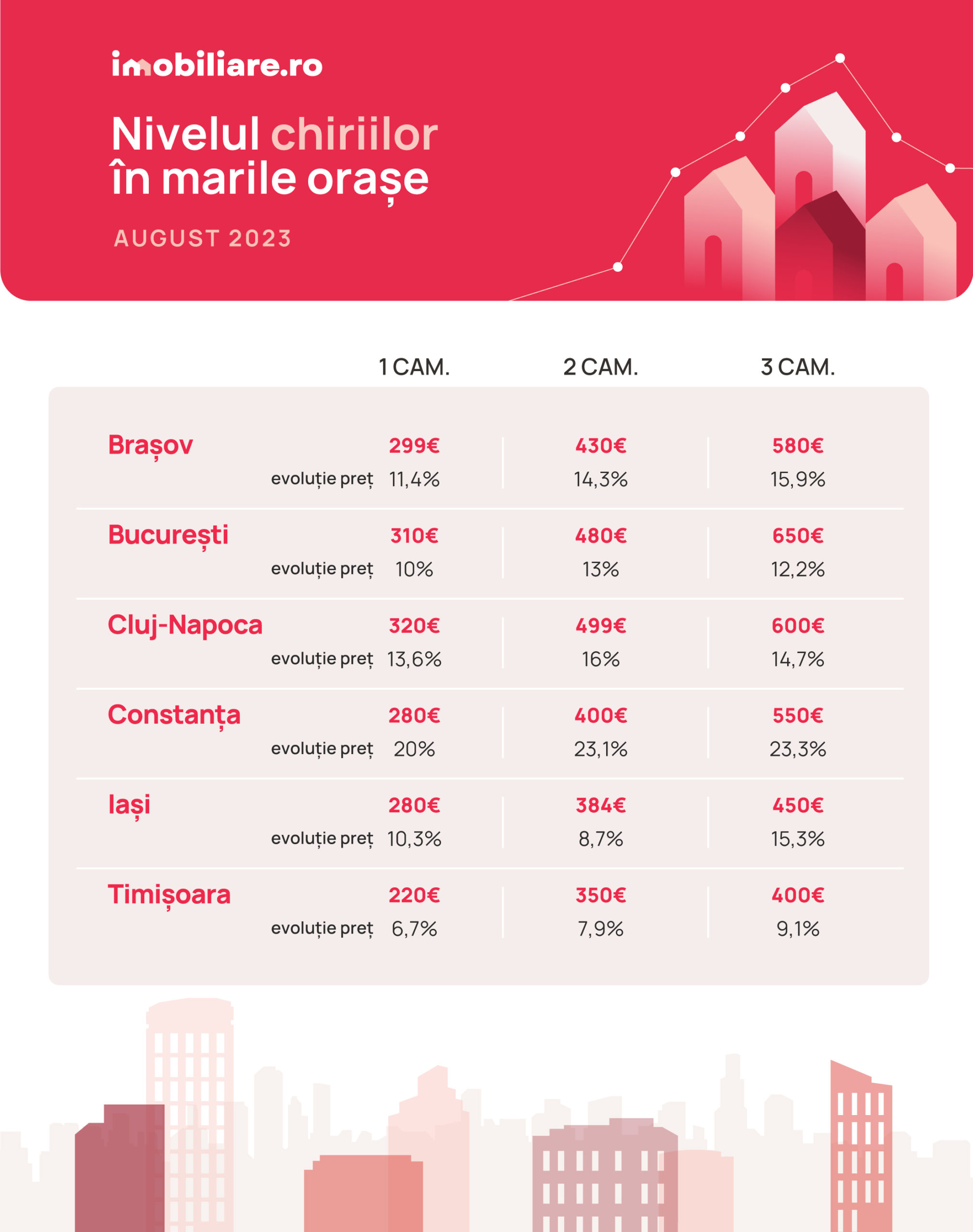 Cum chiriile au continuat să crească și în luna august, previziunile celor de la Imobiliare.ro sunt că tendința va continua, mai ales odată cu revenirea studenților la cursuri.