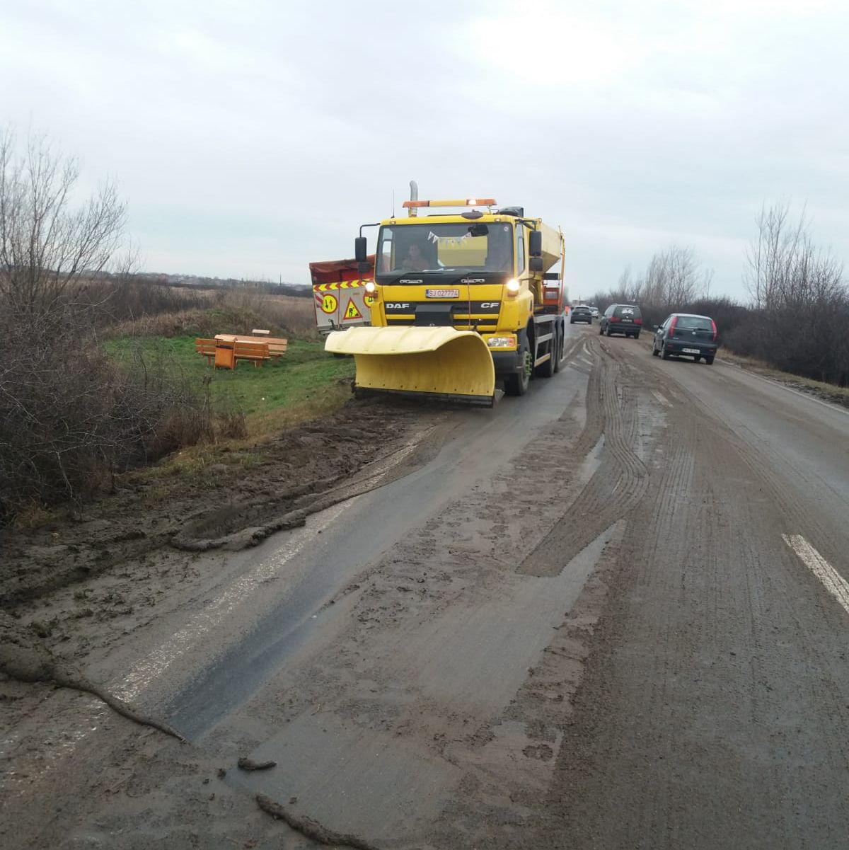 „Circulație îngreunată pe DN 59A, în apropiere de Beregsău Mare (TM). Drumarii de la SDN Timișoara intervin pentru curățarea carosabilului, după ce persoane rămase neidentificate au pierdut … gunoiul de grajd pe drum”, au anunțat cei de la DRDP Timișoara.