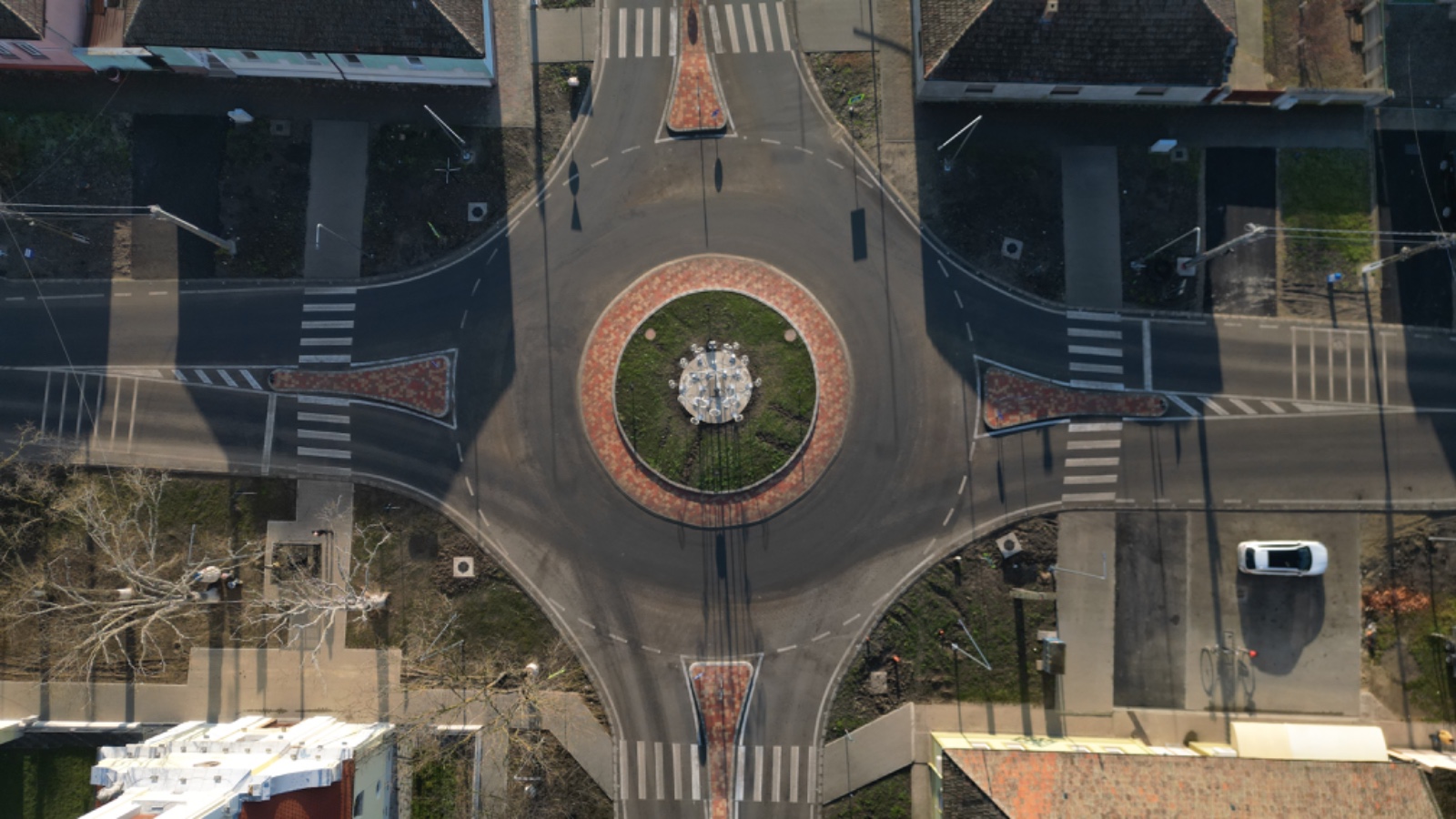 Investiția a presupus amenajarea unui sens giratoriu cu patru brațe de intrare, respectiv ieșire, fiecare cu o bandă de circulație pe sens, sensurile fiind separate prin intermediul insulelor separatoare.