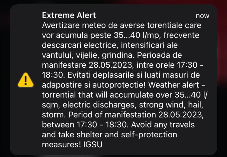mizerie de alerta. In zona Soarelui turna cu galeata de 10 minute…pana sa trimita ei mesajul. Cine are ochi, vede valul de nori negrii si aude tunetele puternice…nu ii trebuie alerta.