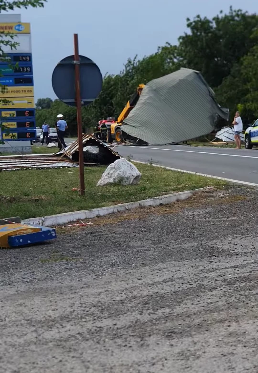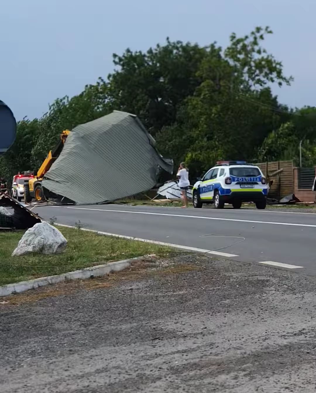 Salvatorii au înlăturat și un acoperiș căzut pe DN 6, în Biled, unde au venit în ajutor și pompierii voluntari ai comunei. Drumul este blocat. Mai mult, au intervenit și pentru degajarea unor elemente de acoperiș în Iohanisfeld.