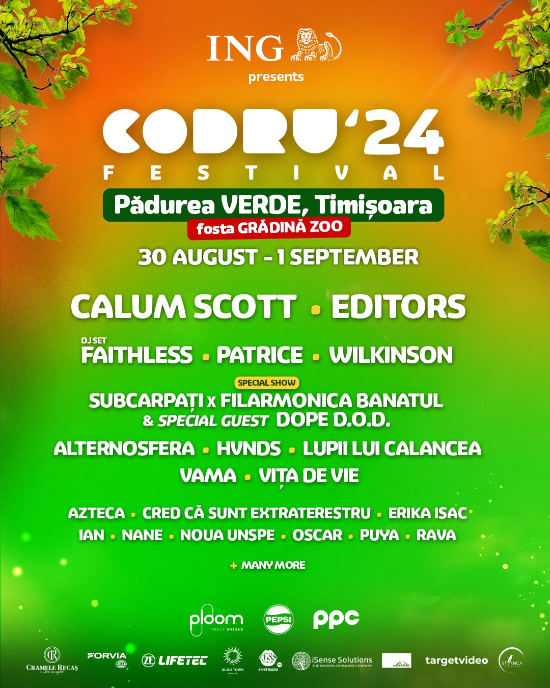 SUBCARPAȚI X Orchestra Filarmonicii Banatul feat. Dope D.O.D., ALTERNOSFERA, Lupii lui Calancea, HVNDS, AZTECA și CRED CĂ SUNT EXTRATERESTRU sunt cei mai noi artiști care completează lineup-ul evenimentului. Aceștia, alături de CALUM SCOTT, EDITORS, FAITHLESS (DJ set), PATRICE, WILKINSON, VIȚA DE VIE, VAMA, ERIKA ISAC, IAN, NANE, NOUĂ UNȘPE, OSCAR, PUYA, RAVA vor urca pe scenele CODRU Festival în perioada 30 august – 1 septembrie.