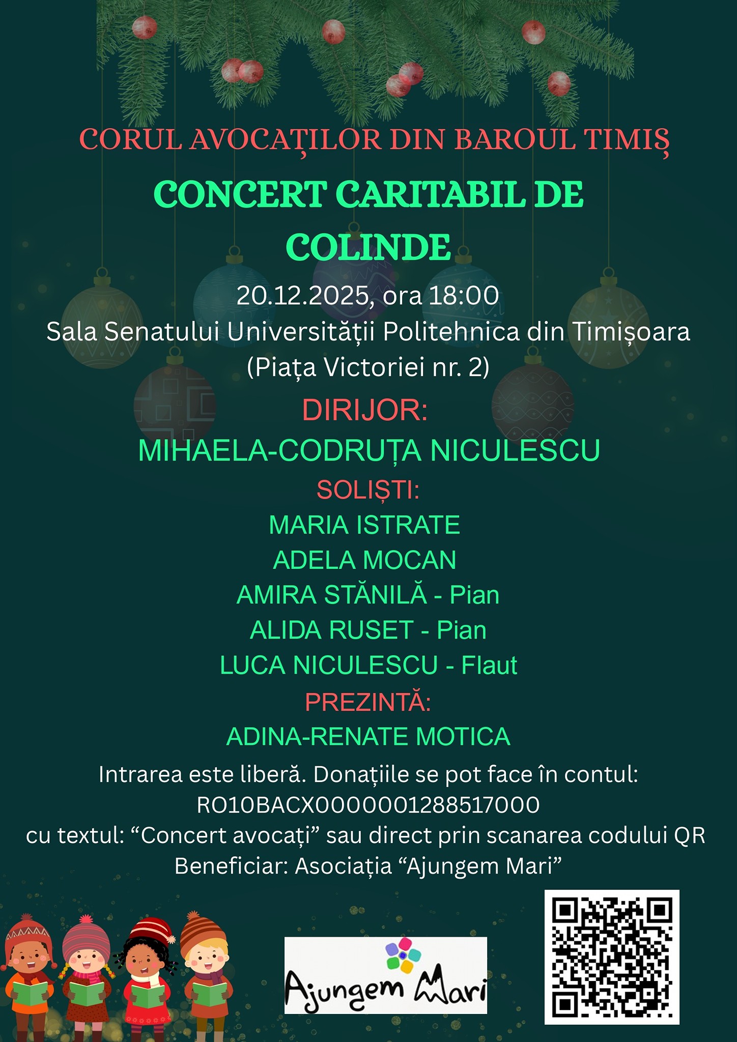 Corul Avocaților este dirijat de Mihaela-Codruța Niculescu și însoțit de invitați speciali.