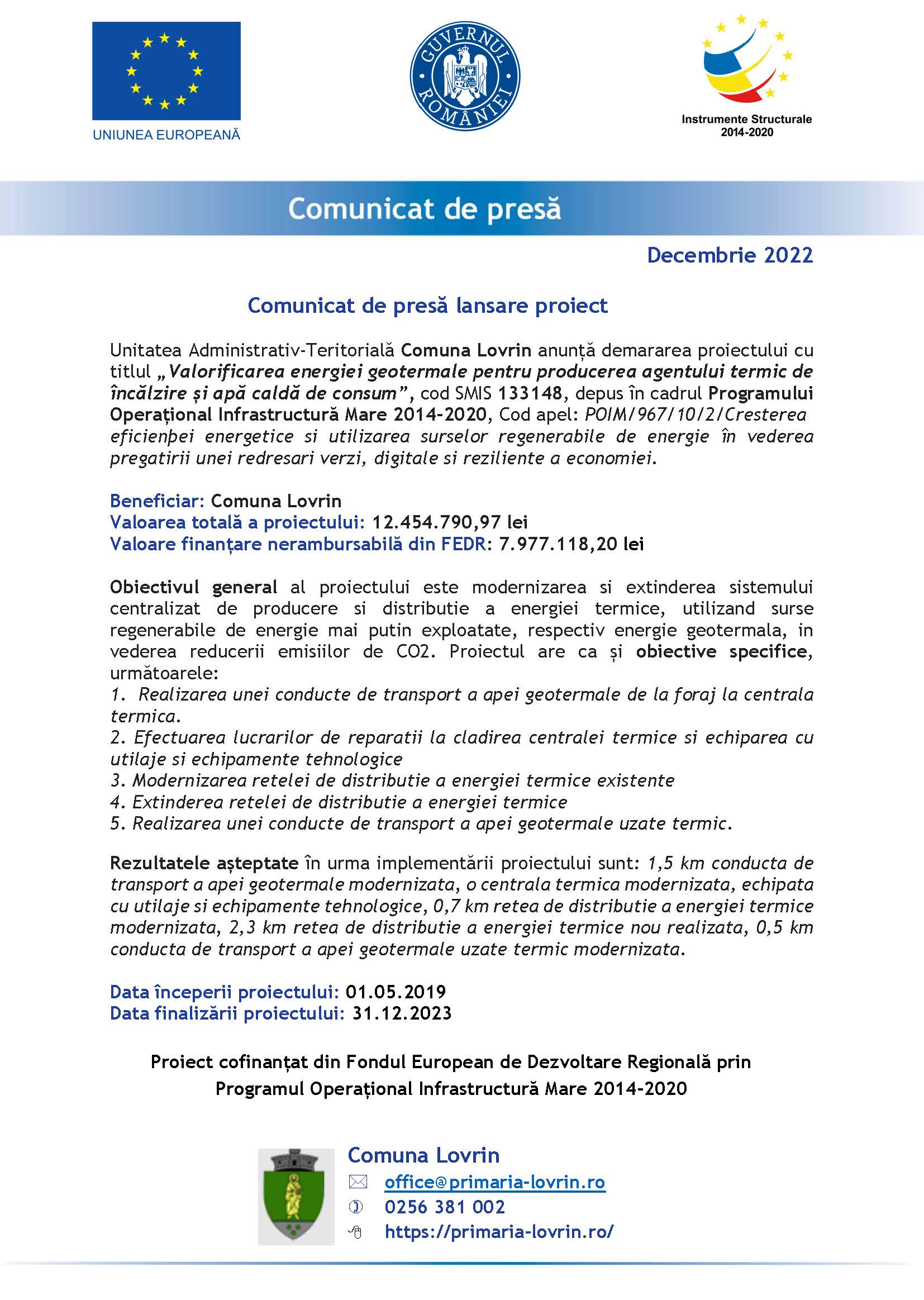 Proiect cofinanțat din Fondul European de Dezvoltare Regională prin Programul Operațional Infrastructură Mare 2014-2020.