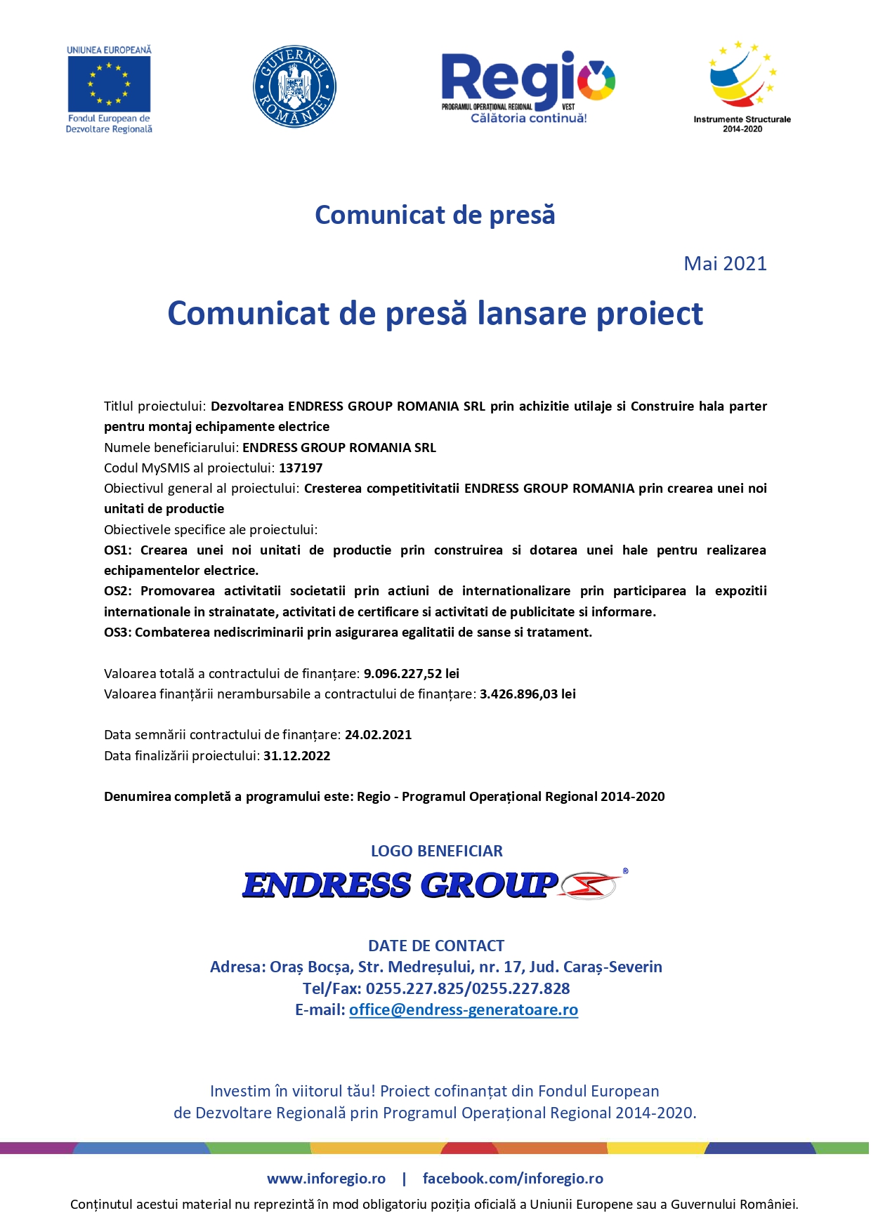 Numele beneficiarului: ENDRESS GROUP ROMANIA SRL