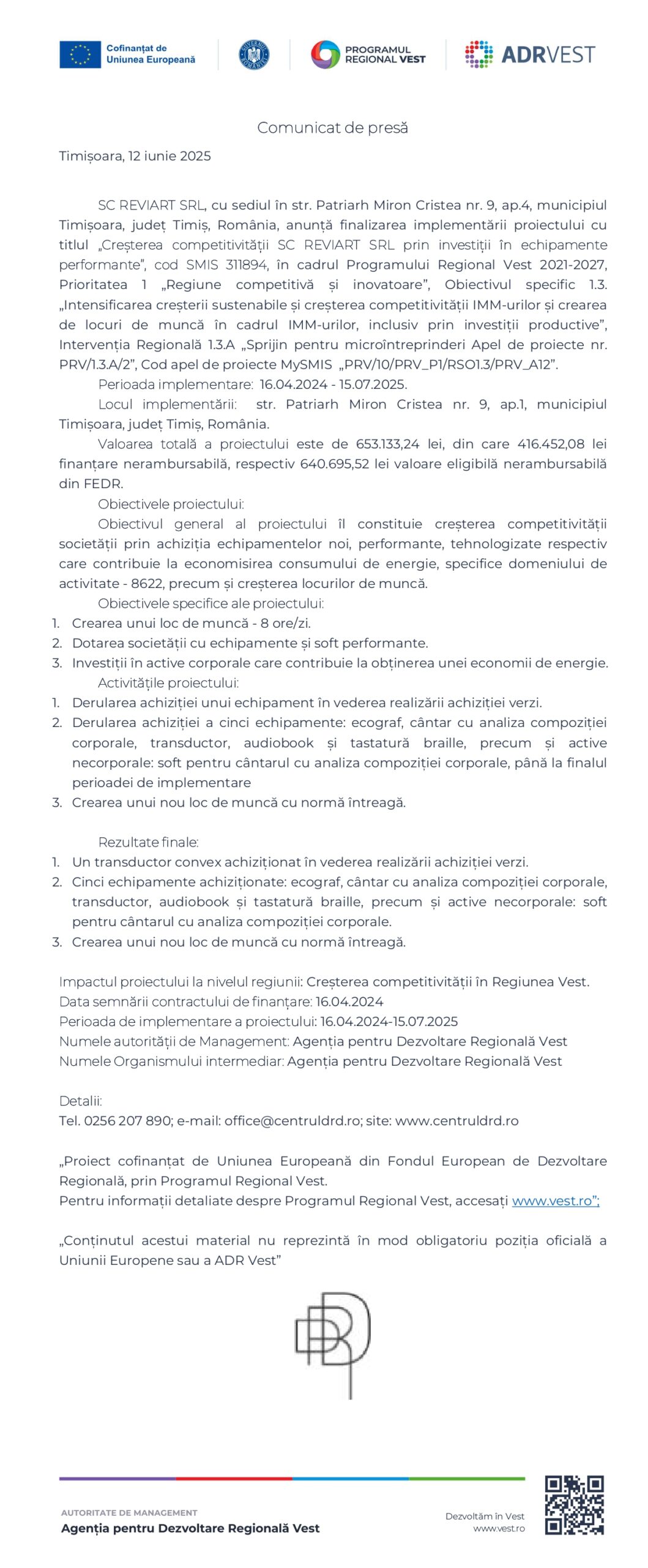 Pentru informații detaliate despre Programul Regional Vest, accesați www.vest.ro”;